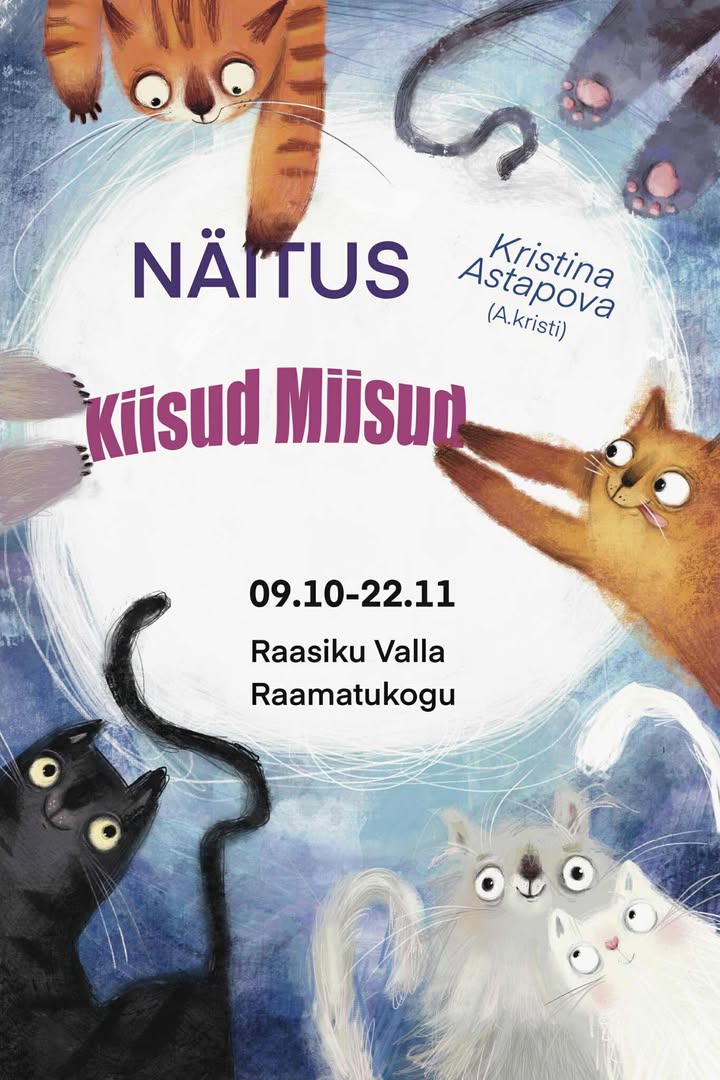 Raasiku raamatukogus on avatud kunstnik Kristina Astapova (A.kristi) illustratsiooninäitus „Kiisud Miisud“, mida saab vaadata 9. oktoobrist kuni 22. novembrini.
