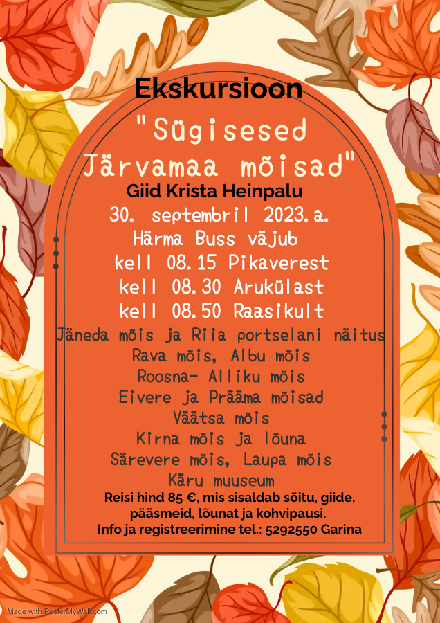 kell 08.45 Raasikult ekskursioon Järvamaa mõisatesse.