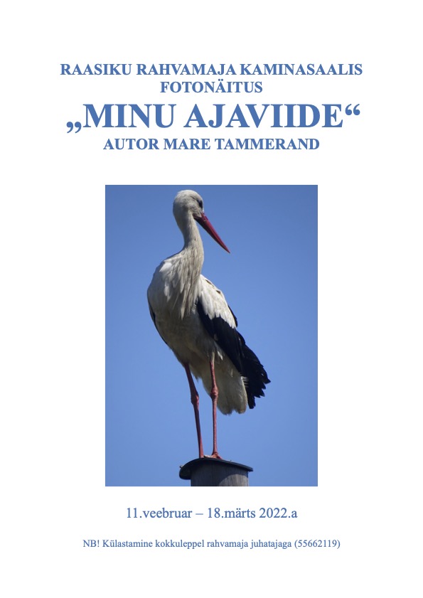 LinkRaasiku Rahvamaja kaminasaalis hobifotograaf Mare Tammerand näitus “Minu ajaviide”