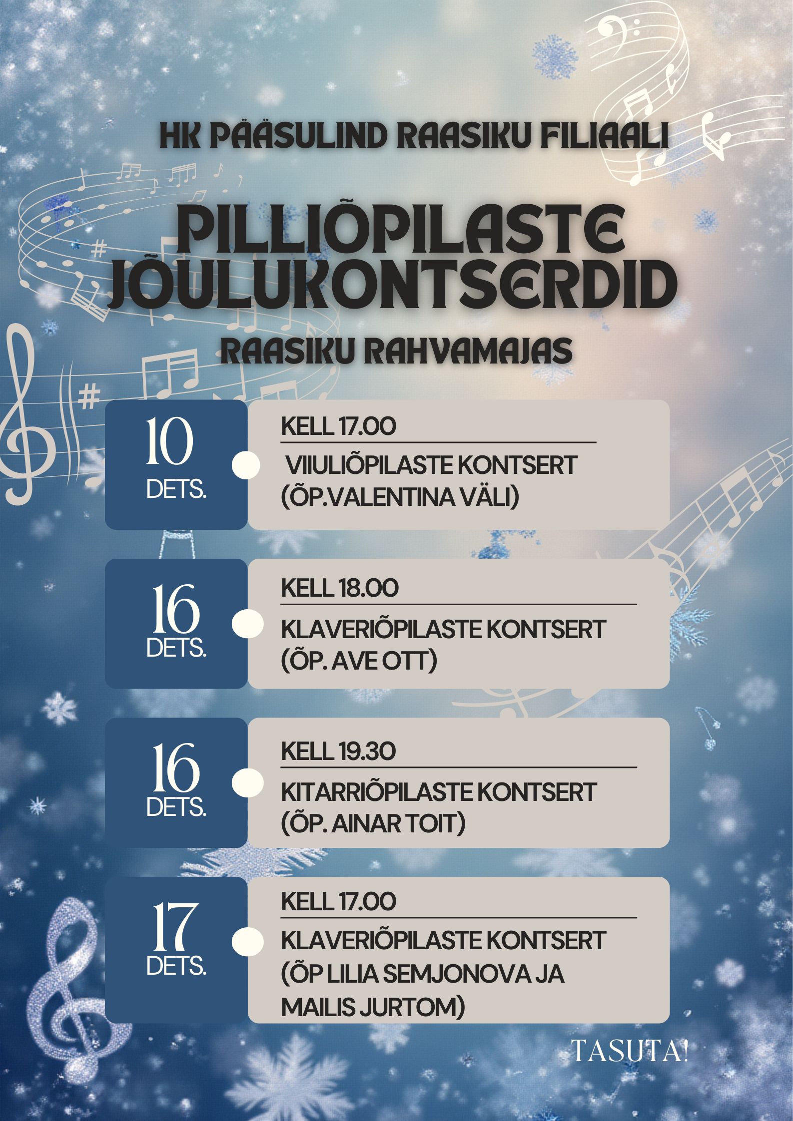 LinkHK Pääsulind Raasiku filiaali PILLIÕPILASTE JÕULUKONTSERDID RAASIKU RAHVAMAJAS: