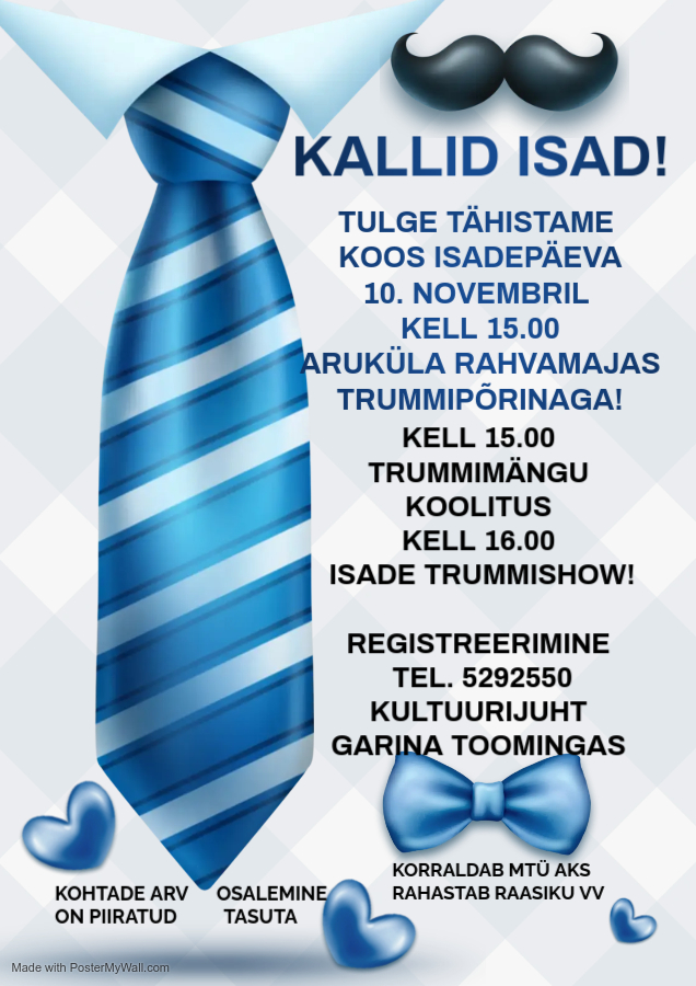 Isadepäev! Kui veel isadepäeval plaane pole siis rahvamajas kohal ole. Trummimäng ja show. Ja kokku tuleb üks vägev esinemisshow!