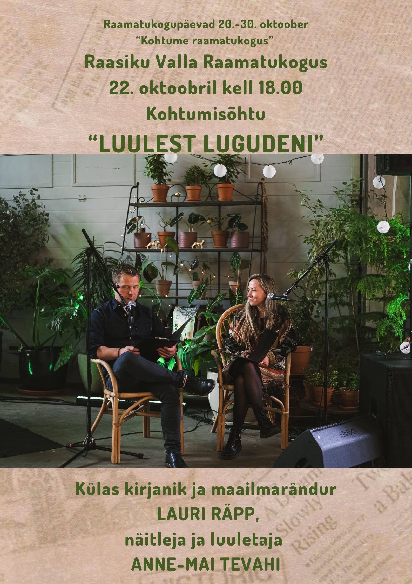 “Luulest lugudeni” on rännak lapsepõlvest tänasesse hetke. Juttu tuleb inimestest, kes on meid mõjutanud. Eluraskustest, kaotustest ja eneseotsingutest. Sellest, mis inspireerib – loodus, seljakotirännakud, teatrimaailm, päris elu ja inimesed. Räägime uskumatuna näivaid lugusid, kuidas väljaantud sõnad hakkavad elama oma elu ja jõuavad omal ajal ringiga tagasi. Lugude vahele loeme enda kirjutatud luulet ja tekste.”