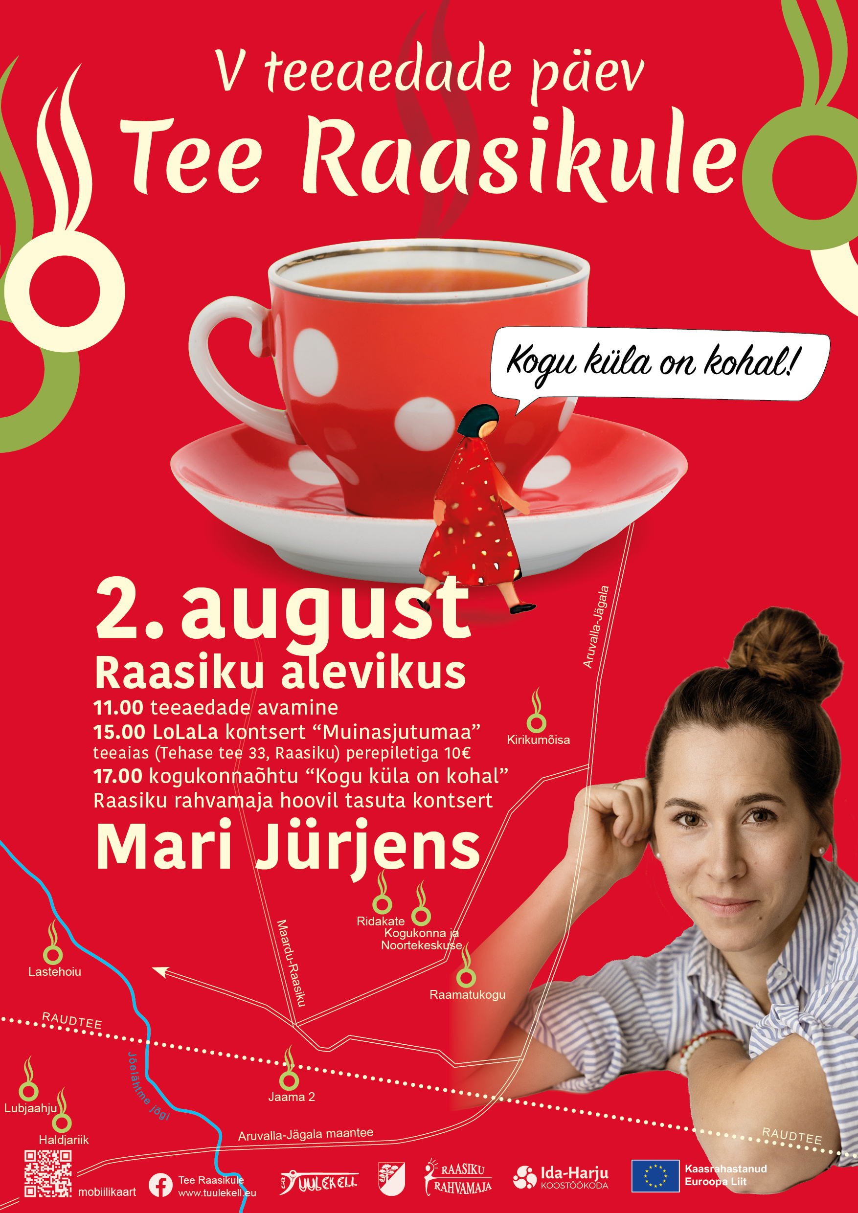 Päeva jooksul ootavad külastajaid erinevad teeaiad Raasiku eri paigus, pakkudes maitseelamusi ja lõbusat äraolemist. Päeva võtab kokku kogukonnaõhtu 𝐾𝑜̃𝑖𝑘 𝑜𝑛 𝑘𝑜𝑜𝑠! Mari Jürjensi kontserdiga