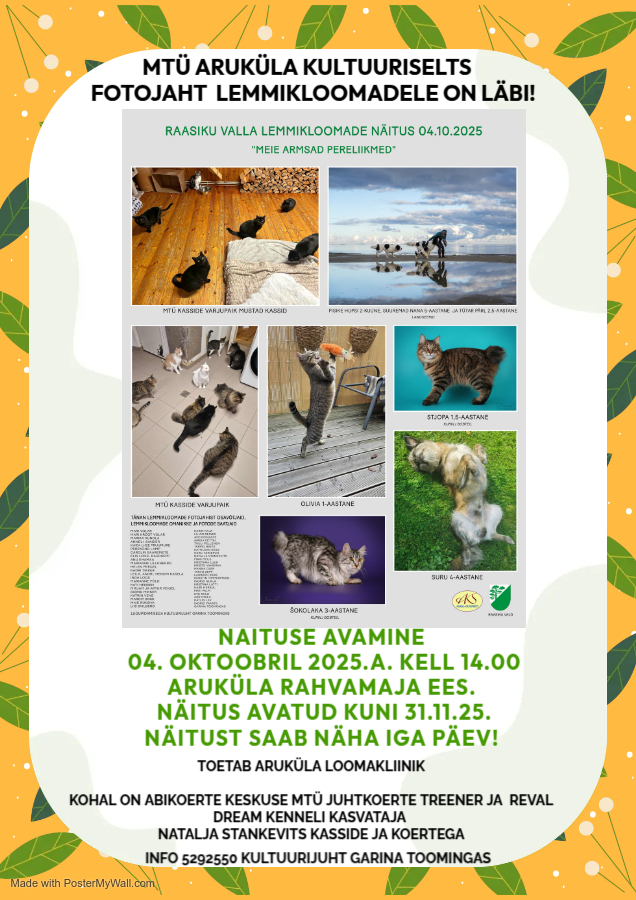 Toetab Aruküla Loomakliinik. Kohal Abikoerte Keskuse MTÜ juhtkoerte treener ja Reval Dream kenneli kasvataja Natalja Stankevits kasside ja koertega.
