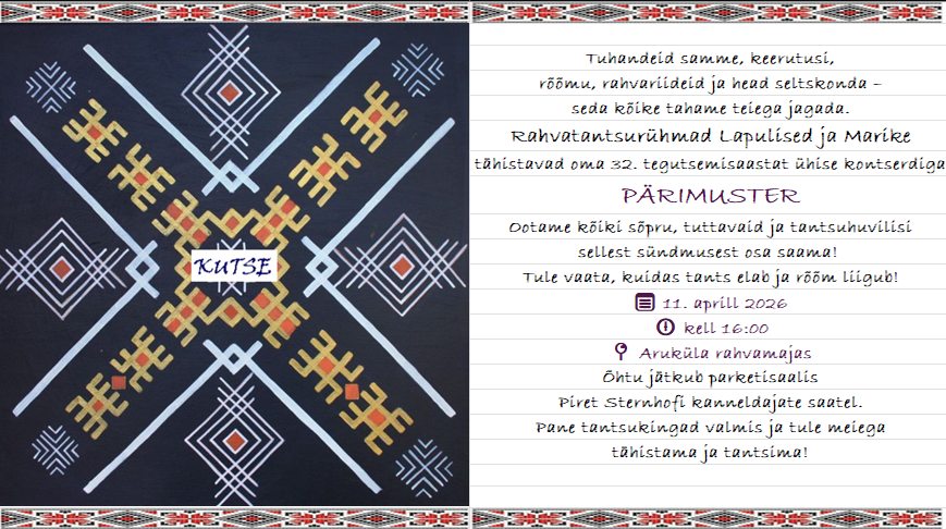 Rahvatantsurühmad Lapulised aj Marike kontsert “PÄRIMUSTER”. Juhendaja REET HÄNIKENE!
