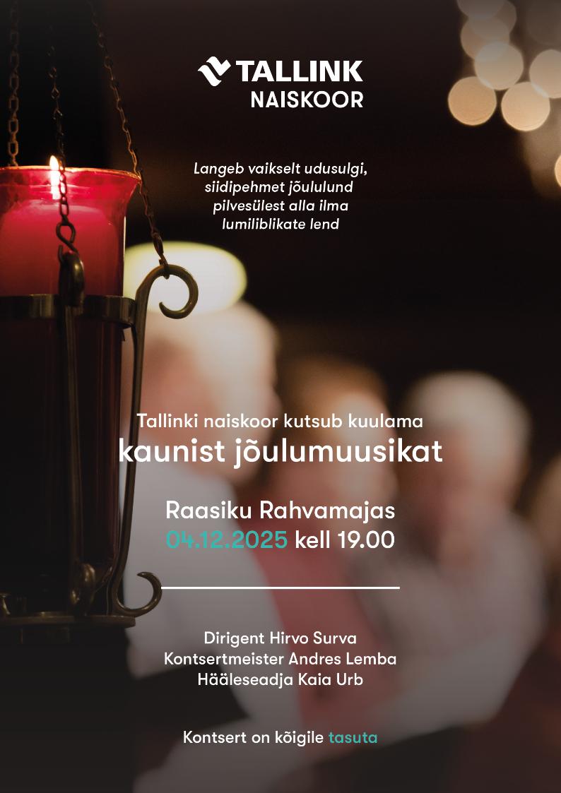 Tallinki naiskoor kutsub kõiki Raasiku Rahvamajja kuulama kaunist jõulumuusikat