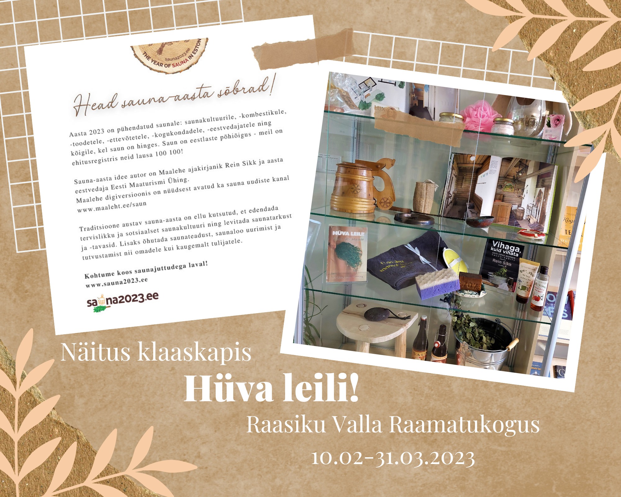 Raasiku Valla Raamatukogu klaaskapis on näitus sauna esemetest. Külastada saab kuni 31. märtsini.