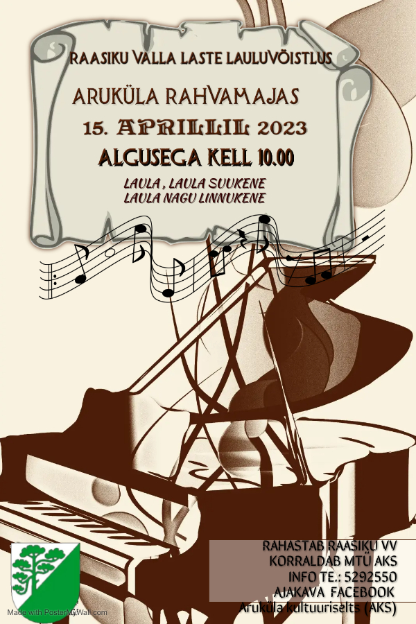 Sündmus tasuta. Tellija ja rahastaja Raasiku VV. Korraldab MTÜ Aruküla Kultuuriselts