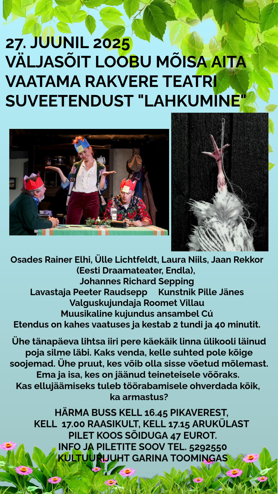 Esietendus 7. juunil 2024 Loobu mõisa aidas Lääne-Virumaal.