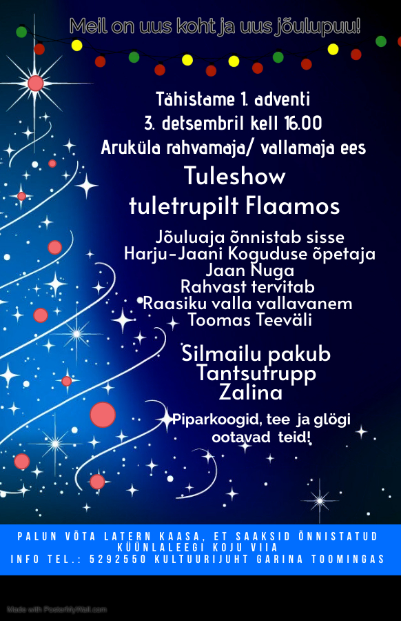 Info tel.: 5292550 kultuurijuht Garina Toomingas