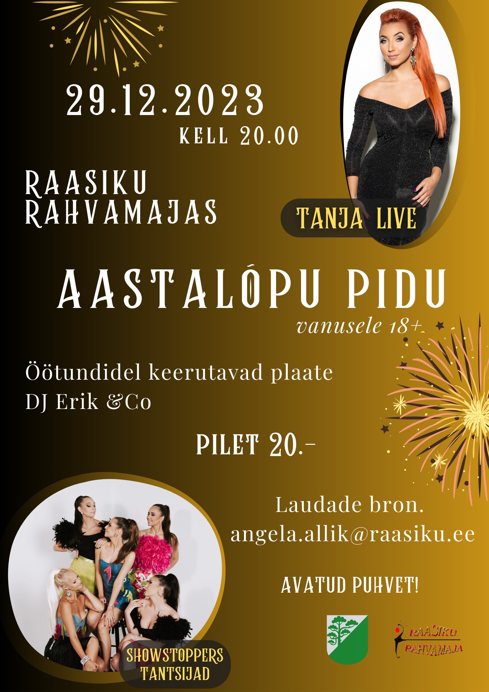 LinkKohvik-klubi õhtu vanusele 18+. Saadame koos ära vana aasta. Tantsumeeleolu loob Tanja. Üllatusesinejaks Showstoppers tantsijad. Öötundidel keerutavad plaate DJ Erik &Co. Laudade broneerimine angela.allik@raasiku.ee