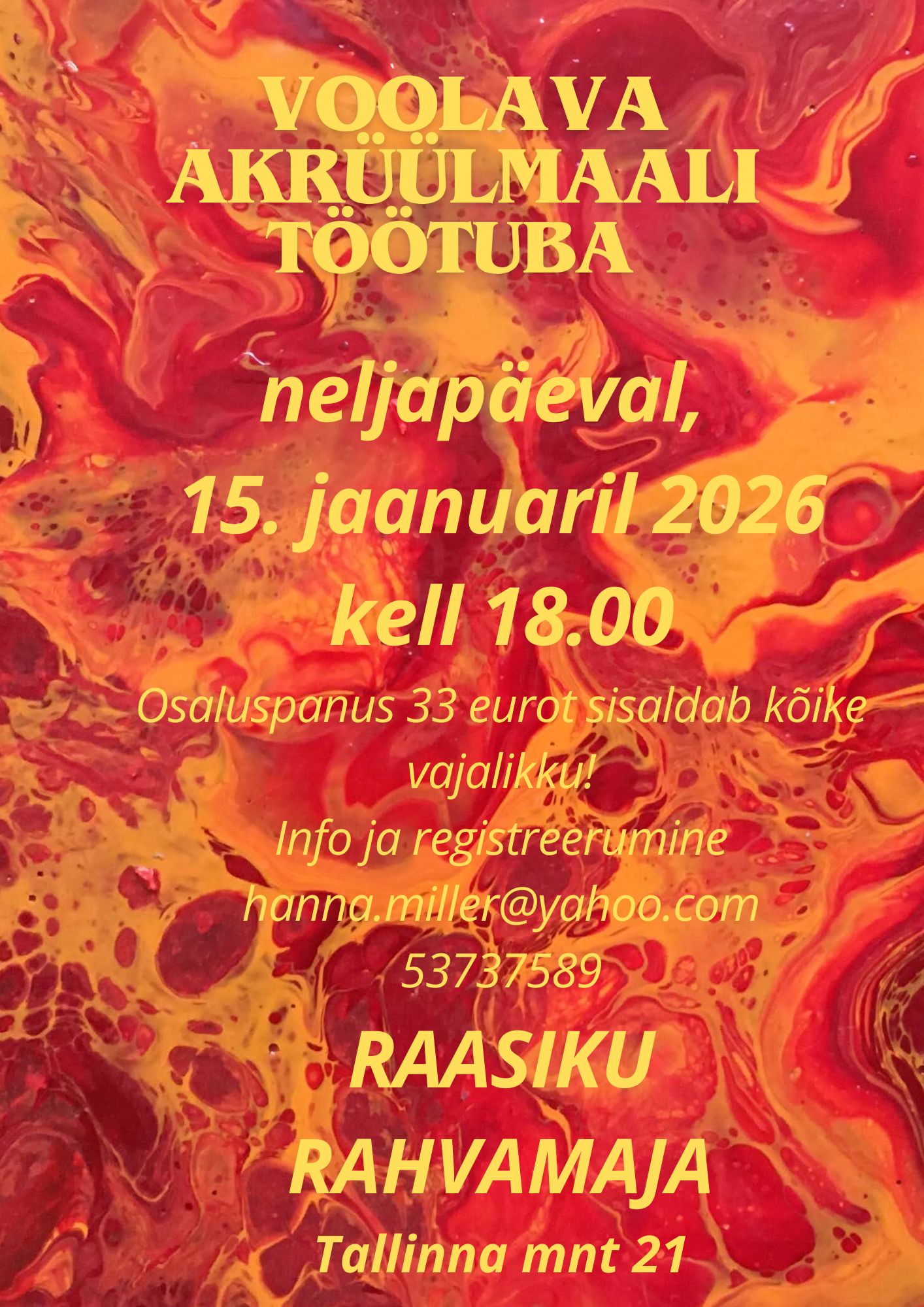 Ainult eelregistreerimisega hanna.miller@yahoo.com, 53737589