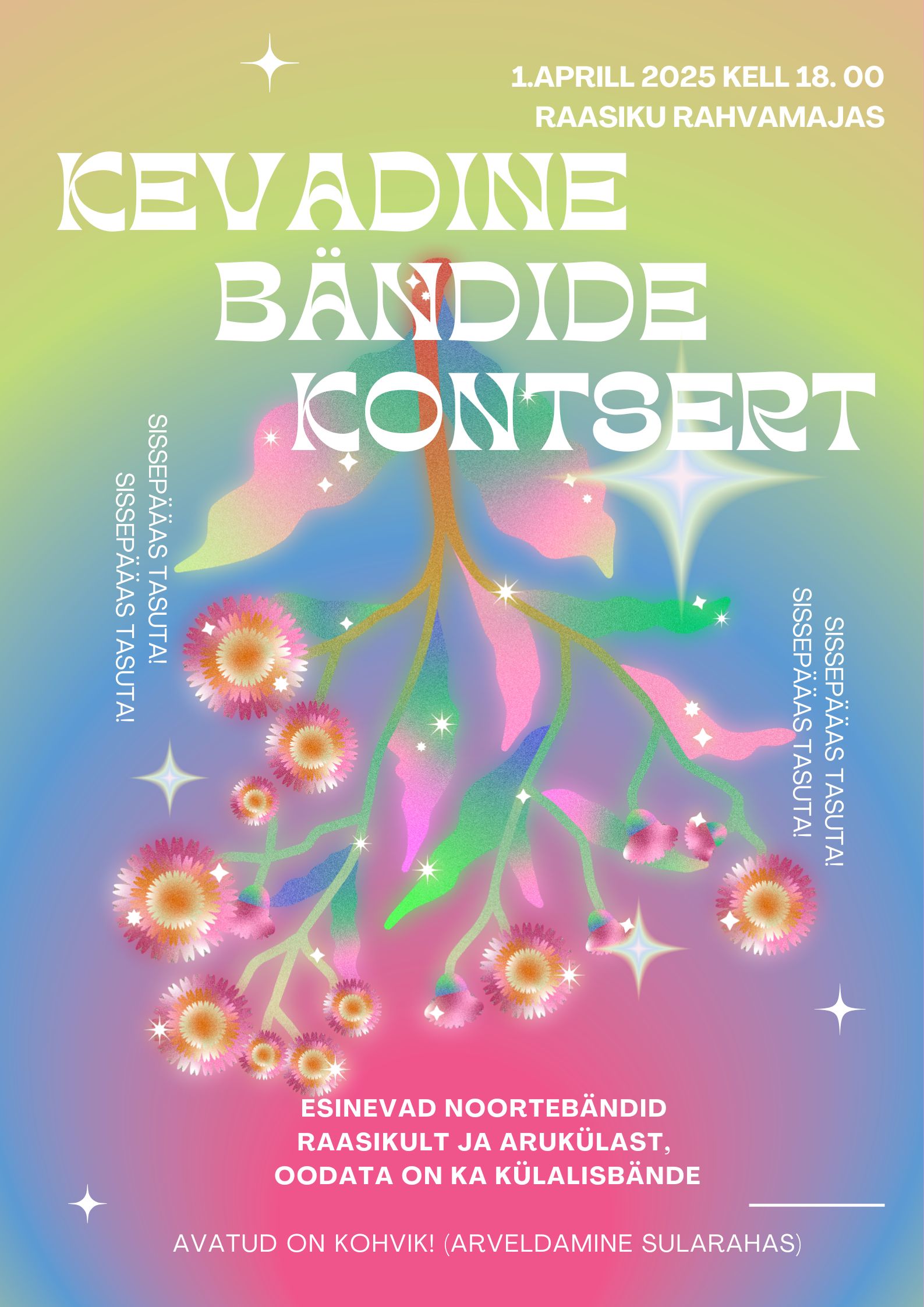 Esinevad noortebändid Raasikult ja Arukülast, oodata on ka külalisbände. Noortebände juhendab õp. Liis-Marii Vendt