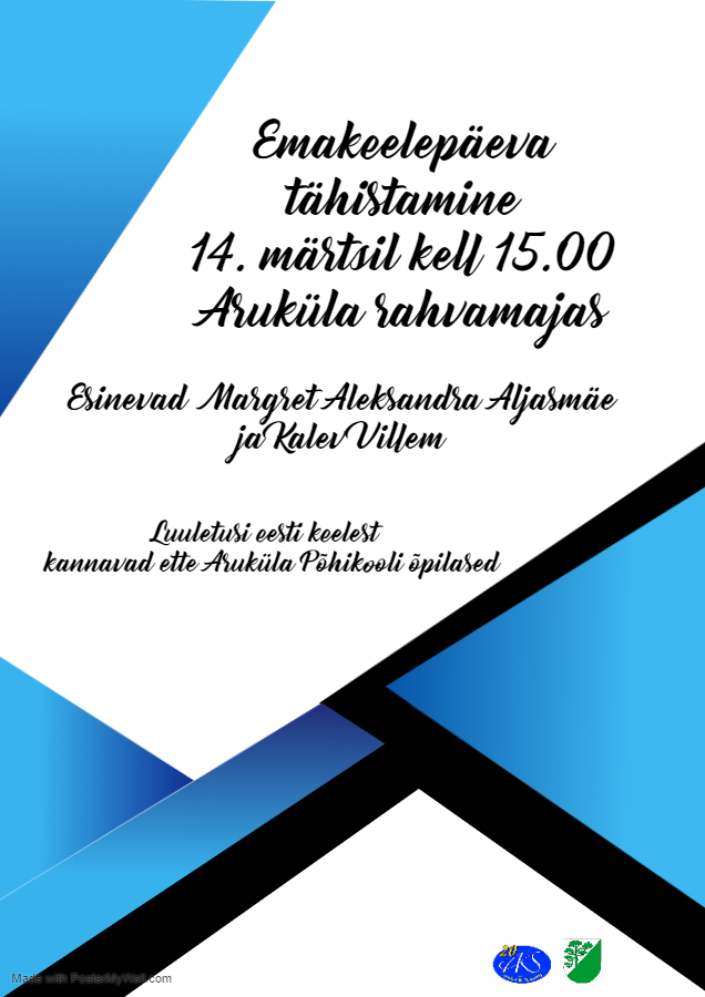 Olete oodatud Aruküla rahvamajja 14. märtsil kell 16.00. Luuletusi kannavad ette Aruküla Põhikooli õpilased. Koostöö eesti keele õpetajaga Karin Aanja. Muusikat teevad Margret Alexandra Aljasmäe ja Kalev Villem.