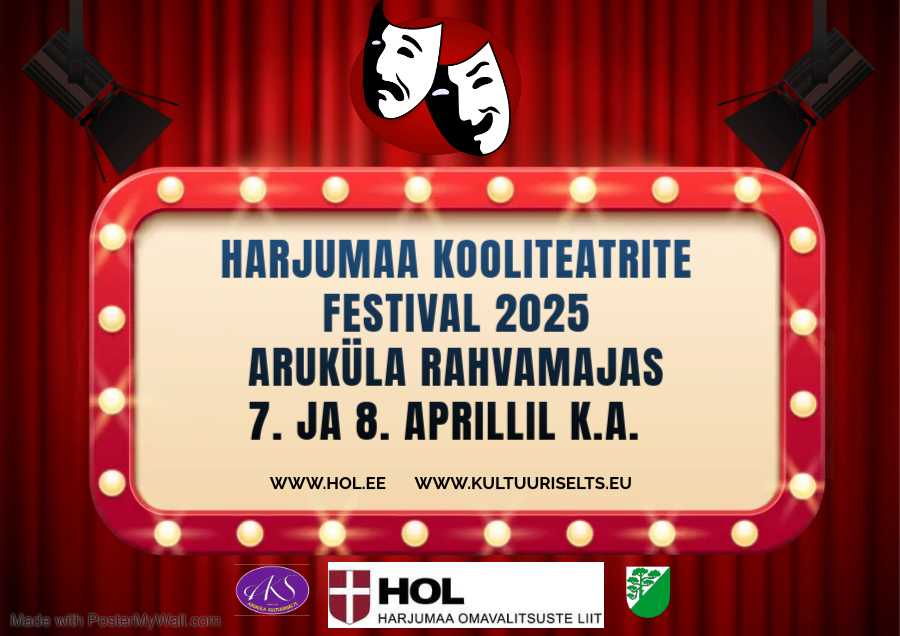 Harjumaa Kooliteatrite Festival 2025 7. ja 8. aprillil Aruküla rahvamajas.