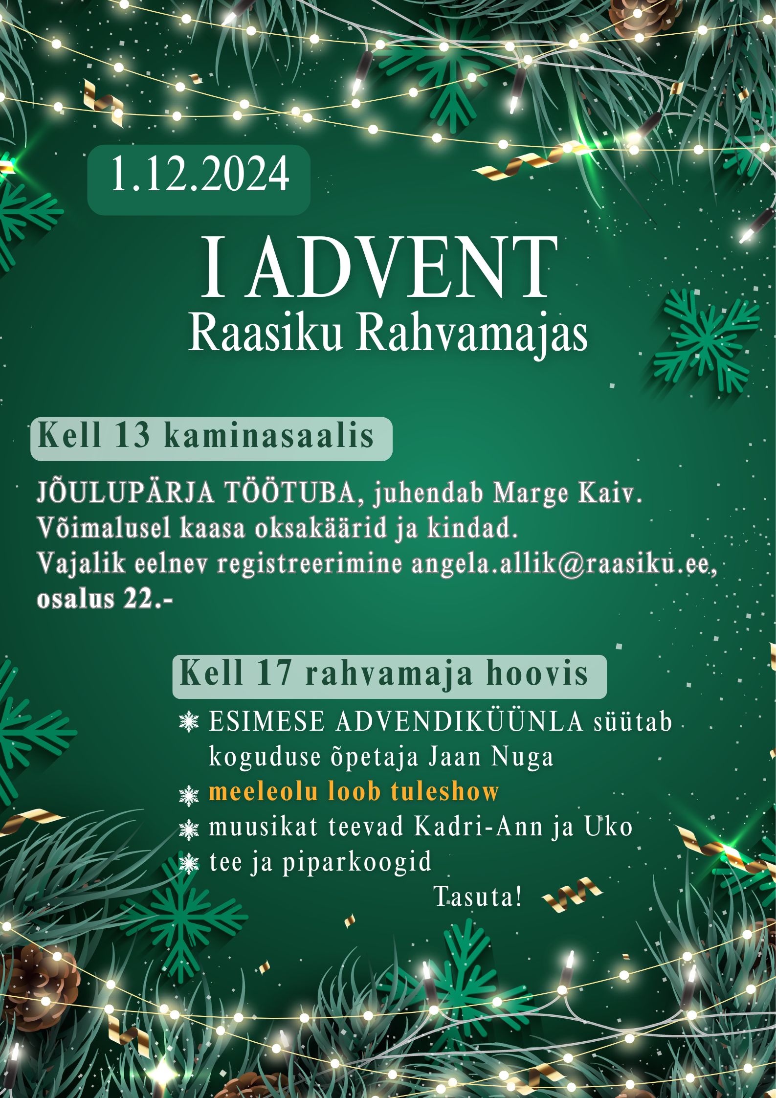 Kell 17 rahvamaja hoovis ESIMESE ADVENDIKÜÜNLA süütab Harju-Jaani koguduse õpetaja Jaan Nuga,