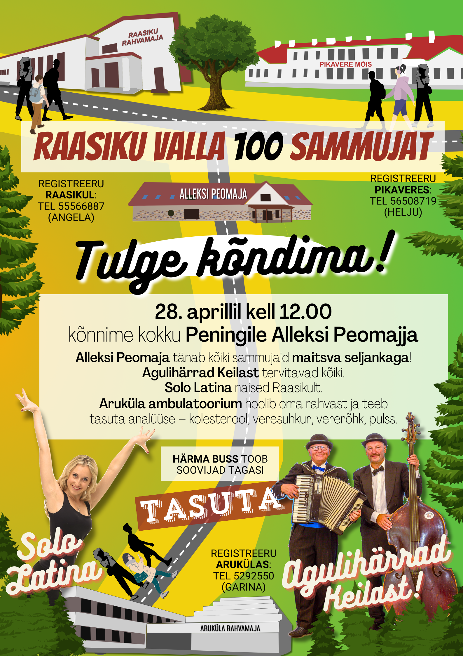 Link28. aprillil kell 12 kõnnib Raasiku vald Peningile kokku. Start Pikavere kooli juurest, Raasiku rahvamaja ja Aruküla rahvamaja eest. Külaelanikud saavad liituda lähima stardi punktiga. Kohtume Alleksi Peomaja ees ja sees. Aruküla Ambulatoorium oma meeskonnaga teostavad analüüse: kolesterool, veresuhkur, vererõhk, pulss ja soovitusi jagab dr. Vain.