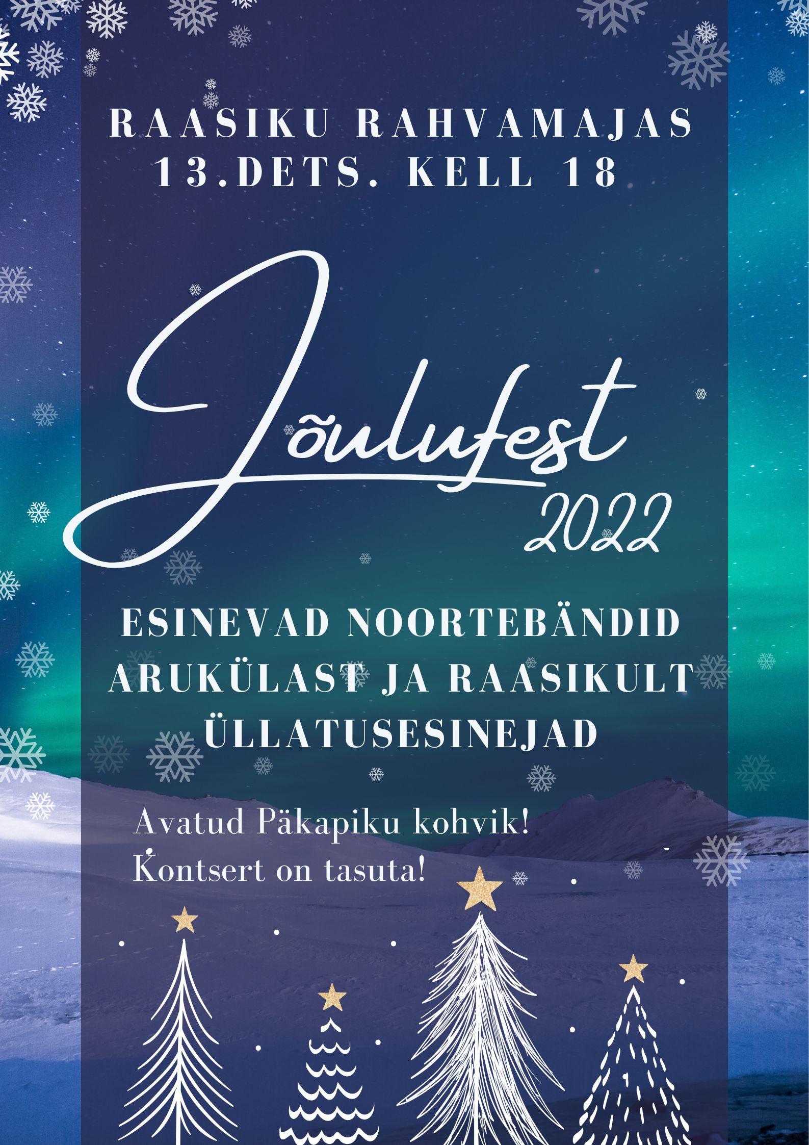 13.dets. kell 18 toimub Raasiku Rahvamajas Huvikool Pääsulind noortebändide JÕULUFEST Esinevad noortebändid ARUKÜLAST JA RAASIKULT, oodata on ka üllatusesinejaid
