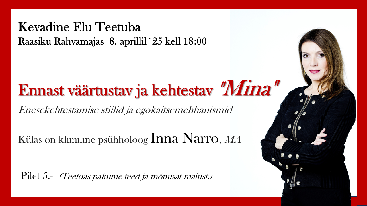 „Ennast väärtustav ja kehtestav MINA“ Enesekehtestamise stiilid ja egokaitsemehhanismid. Külas on kliiniline psühholoog Inna Narro