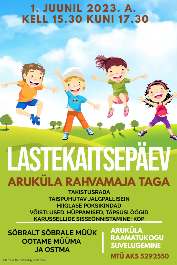 Link1. juunil kell 15.30 kuni 17.30 Aruküla rahvamaja taga lastekaitsepäeva tähistamine.