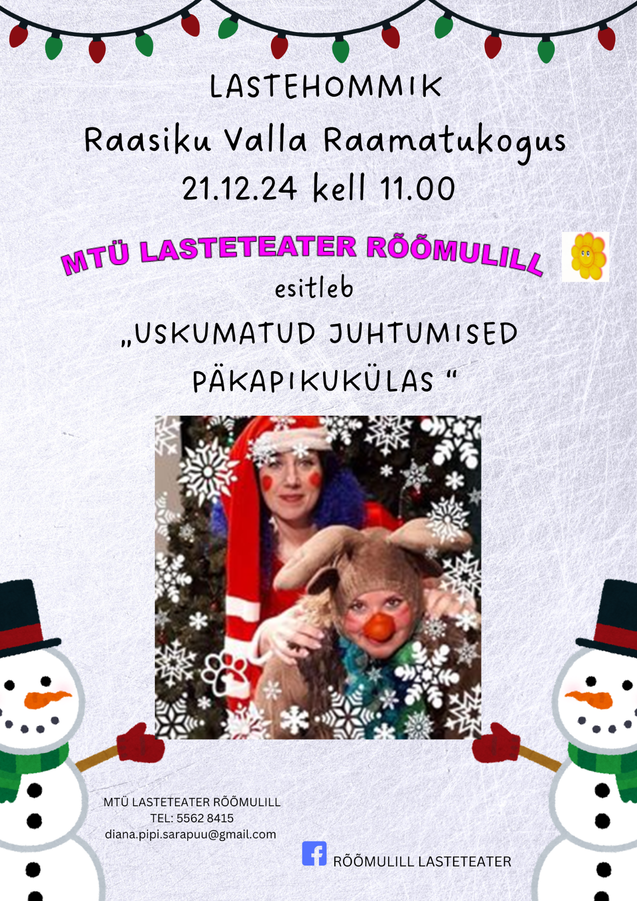 Link21. detsembril kell 11.00 toimub Raasiku Valla Raamatukogus jälle lastehommik ning lavale astub Lasteteater Rõõmulill etendusega “Uskumatud juhtumised päkapikukülas”.