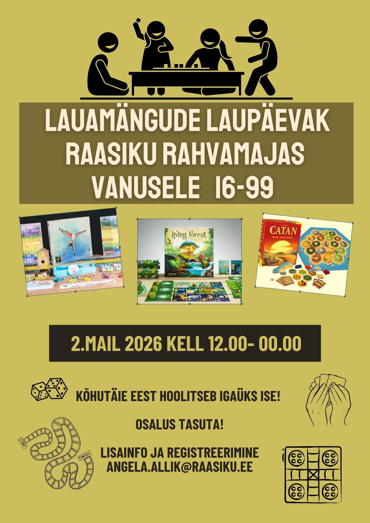 Valikus on nii vanu tuttavaid kui juba päris uusi lauamänge, võta ka mõni enda riiulil nukralt seisma jäänud lauamäng kaasa. Võid tulla nii üksi kui seltskonnaga