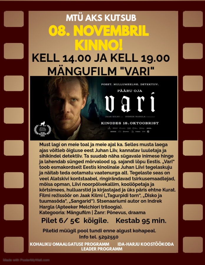 Mängufilm “Vari”. Kell 14.00 ja kell 19.00 Aruküla rahvamajas