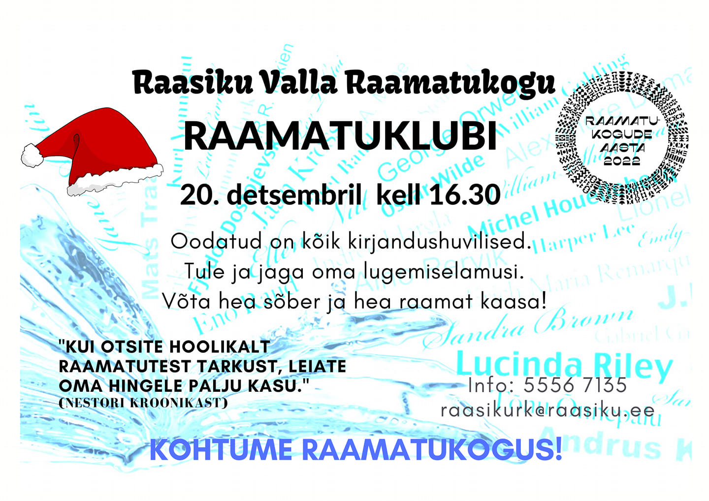 Aasta viimane Raasiku raamatukogu raamatuklubi kokkusaamine toimub 20. detsembril kell 16.30