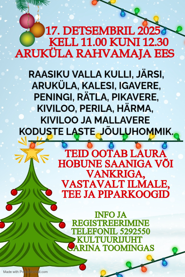 Info tel. 5292550 kultuurijuht Garina Toomingas