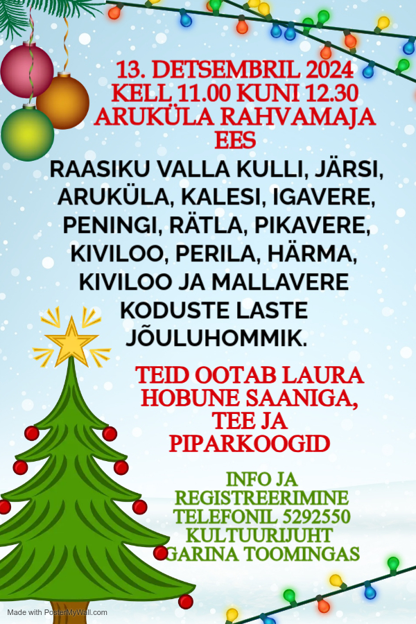 Raasiku valla Kulli, Järsi, Aruküla, Kalesi, Igavere, Peningi, Rätla, Pikavere, Kiviloo, Perila, Härma, Kiviloo ja Mallavere koduste laste jõuluhommik.