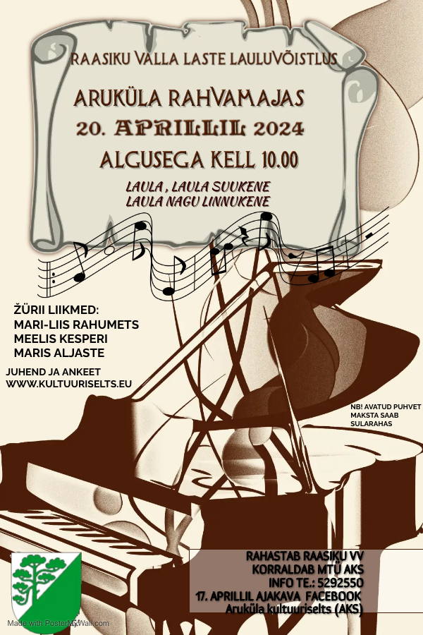 Raasiku valla laste lauluvõistluse ajakava 20. aprillil