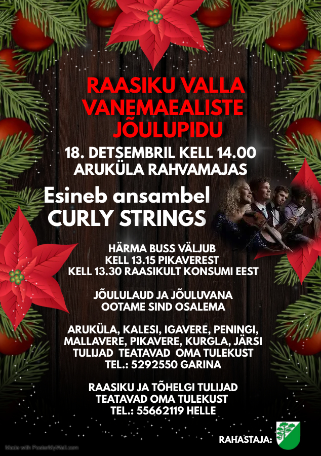 Raasiku valla vanemaealiste jõulupidu. Esineb ansambel “Curly Strings”