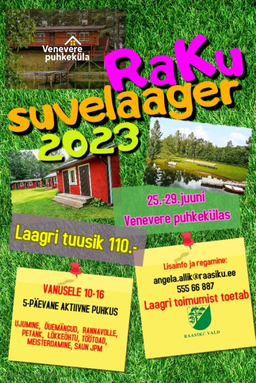 Lisainfo ja regamine: angela.allik@raasiku.ee; 555 66 887. Laagri toimumist toetab Raasiku vald
