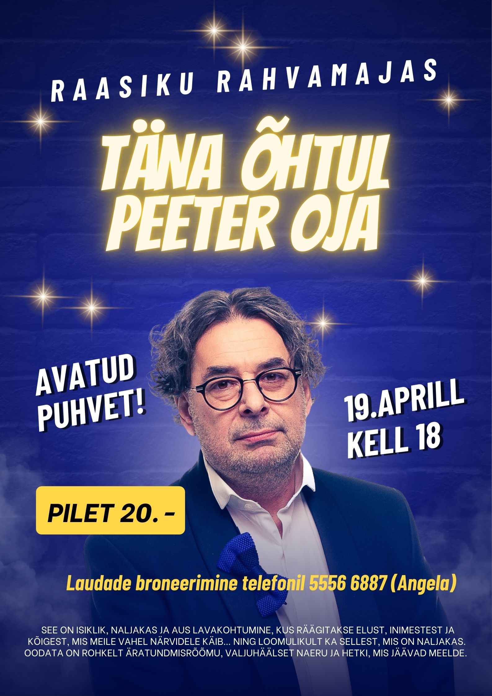 Link19.aprill kell 18 salongõhtu „TÄNA ÕHTUL PEETER OJA“