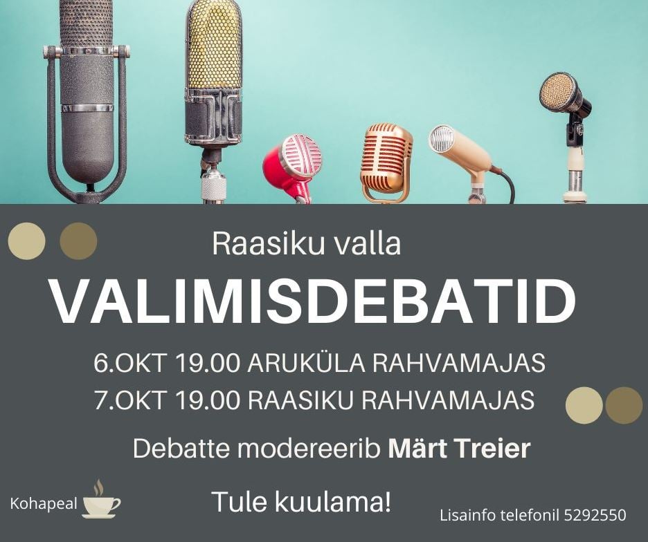 Valimisdebatid toimuvad Aruküla rahvamajas 6. oktoobril kell 19.00 ja Raasiku Rahvamajas 7. oktoobril kell 19.00.