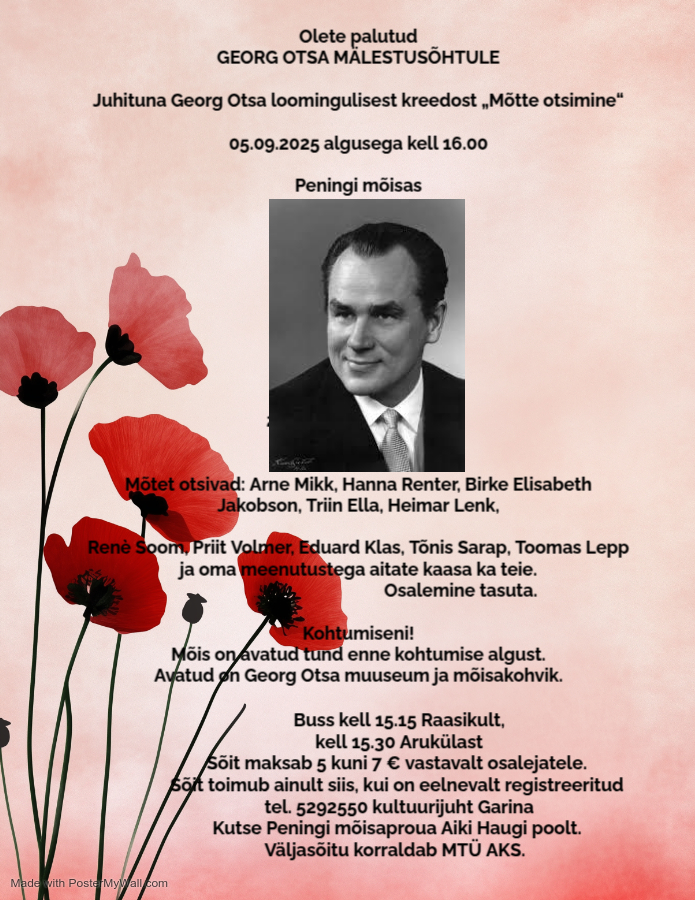 Peningi mõisa kell 16 algavale Georg Otsa mälestusõhtule.